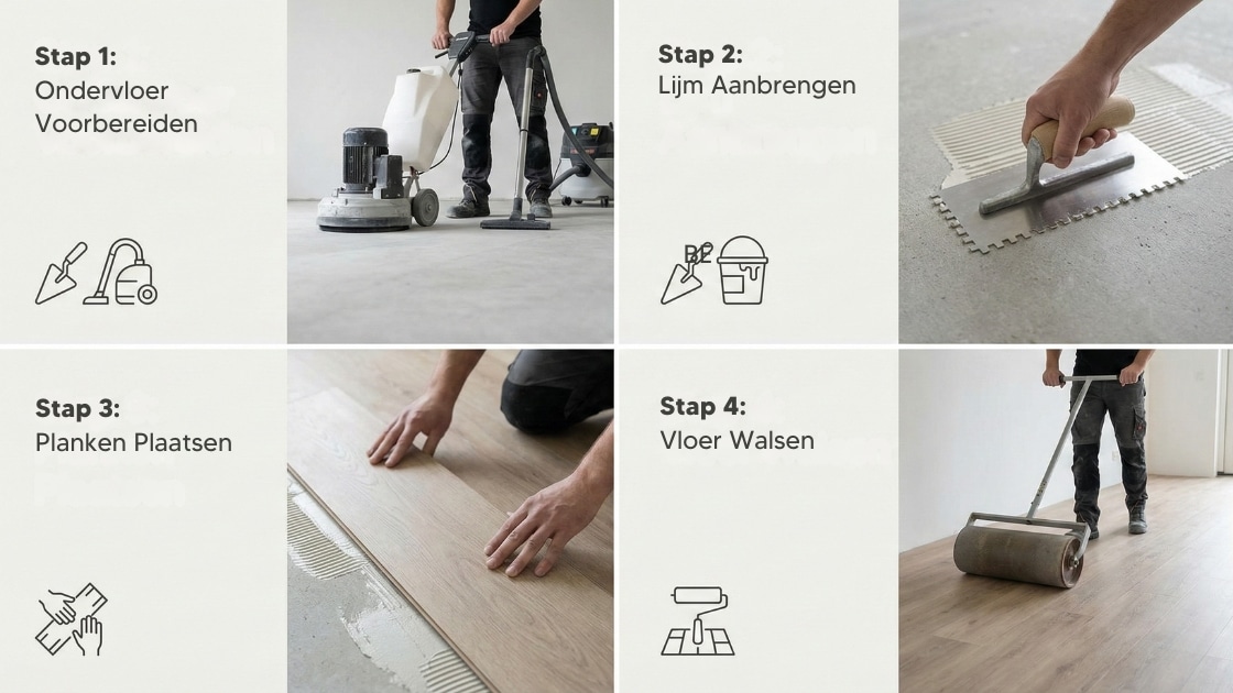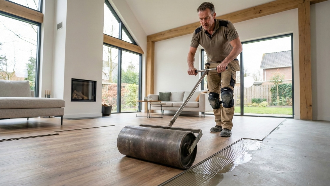 Een PVC vloer plakken lijkt op het eerste gezicht eenvoudig. Je brengt lijm aan, legt de stroken, drukt ze aan en klaar. In werkelijkheid is het precisiewerk waarbij voorbereiding alles bepaalt.