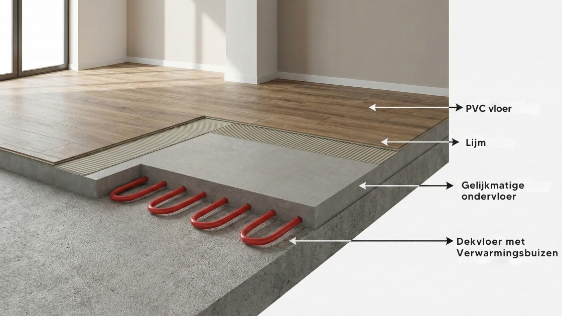 Niet elke lijm is geschikt voor PVC. Het type ondergrond, vloerverwarming en ruimte bepalen de keuze.
