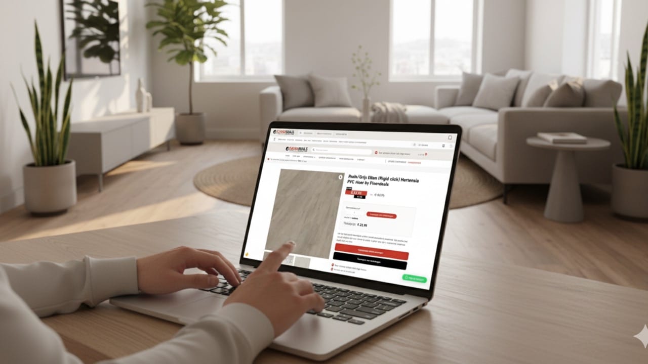 Op Floordeals vul je simpelweg bij elk product het aantal m² in en het systeem rekent automatisch uit hoeveel pakken je nodig hebt en wat de totaalprijs wordt.