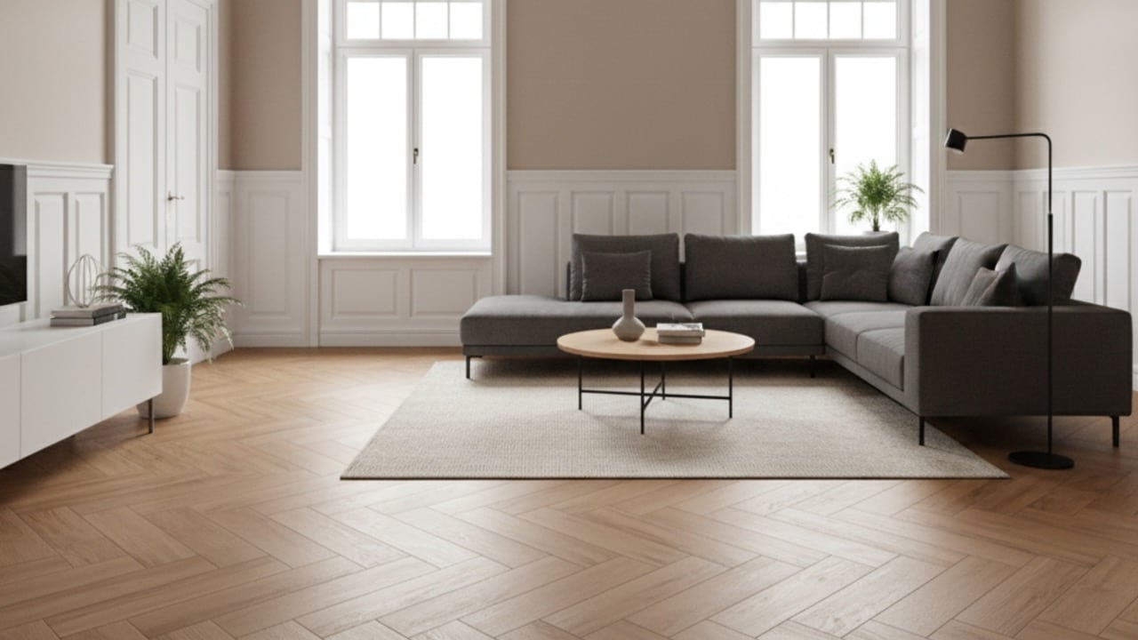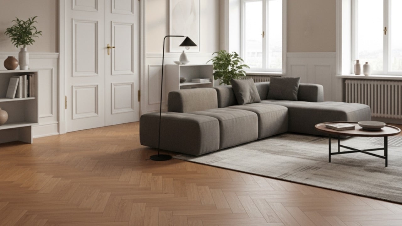 Een visgraat PVC vloer is perfect voor klassieke of karaktervolle woonkamers. Je behoudt de uitstraling van een houten parketvloer, maar dan met het gemak van PVC.